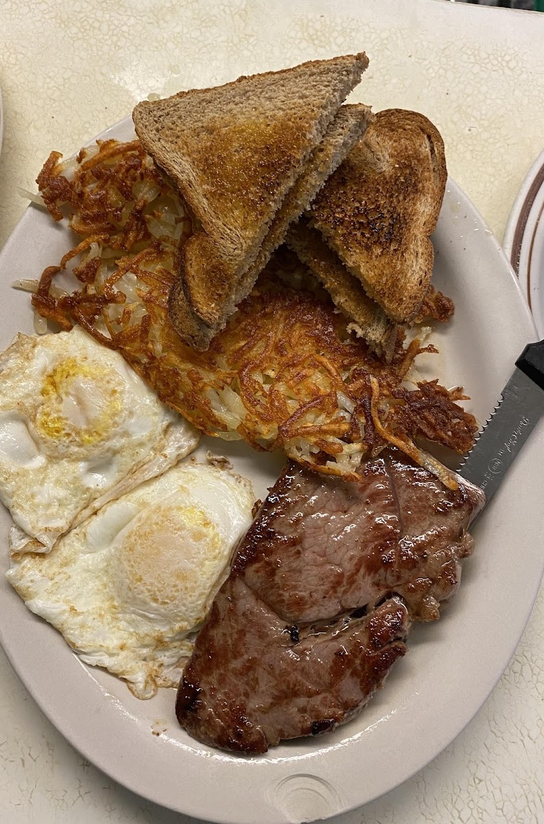 Very nice interior, got myself some steak and eggs, they were amazing although the steak was kind of bland so I just added some salt after that it was amazing. Would definitely recommend going here if your looking for a great breakfast place